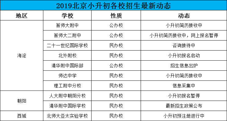 2019年小升初已有動(dòng)態(tài)學(xué)校
