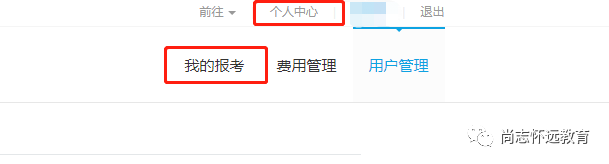 1、用電腦打開準(zhǔn)考證打印鏈接,登錄學(xué)生賬號,點擊個人中心,選擇我的報考;