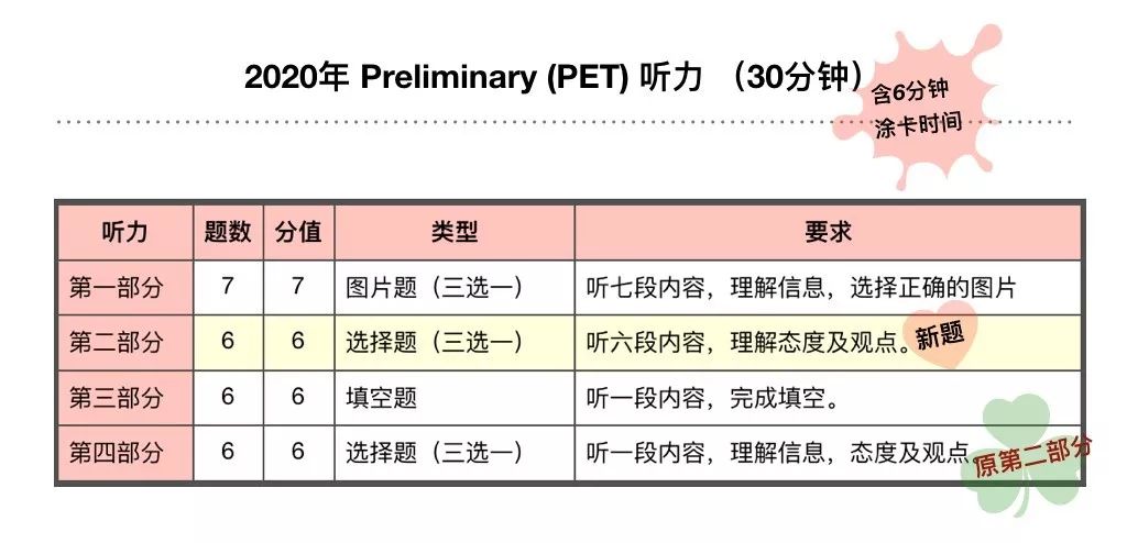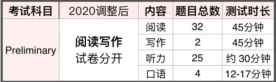 這次考試改革的重要方向是為了幫助學(xué)員在劍橋英語(yǔ)的不同難度級(jí)別間平穩(wěn)過渡,順暢對(duì)接,所以2020年1月開始KET和PET兩個(gè)級(jí)別的題型均做了調(diào)整。